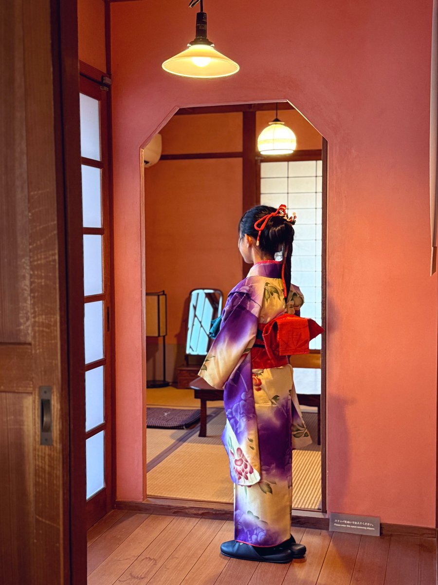 夢二生家や少年山荘でのアンティーク着物の着付け体験の詳細は以下のポストからどうぞ。 こちらは夢二のモデル、お葉さんの部屋の前で撮りました。 pic.x.com/7P0VUijkop x.com/matuo/status/1…