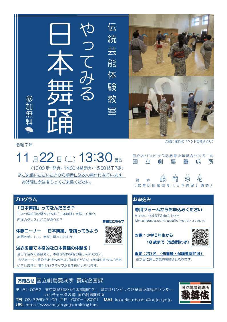 【拡散お願い致します!】 来週末11月22日(土)の無料体験、まだまだ参加者募集中です! 浴衣のお貸し出し、着付があり、 手ぶらでお気軽にご参加出来ます✨ 対象は小学5年生から18歳まで (男女問わず) 是非、日本舞踊を楽しんでいただきたいです。 お待ちしてます😊✨ x.com/kokuritsu_yose…